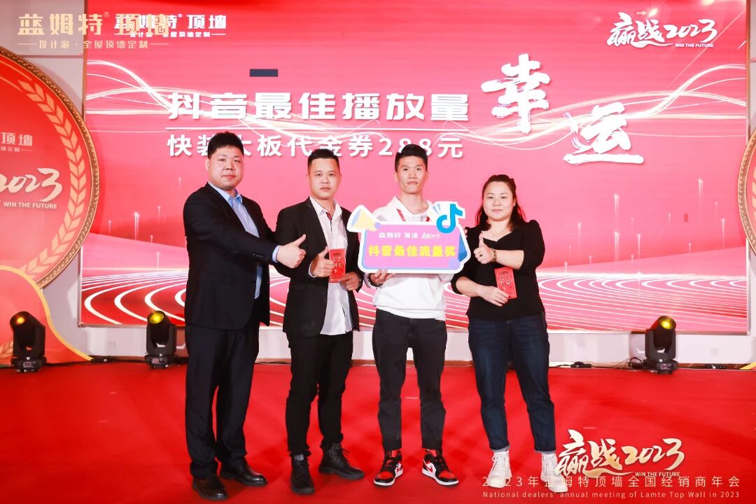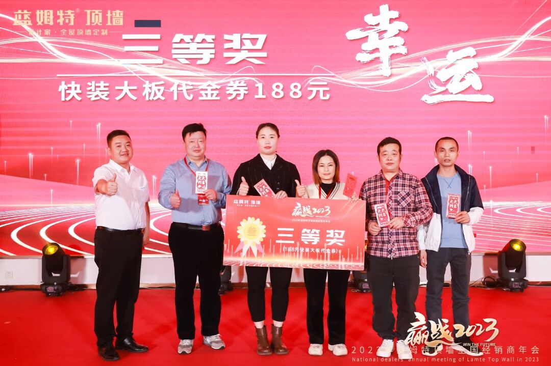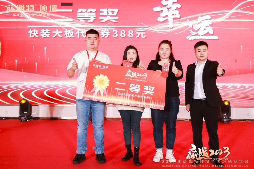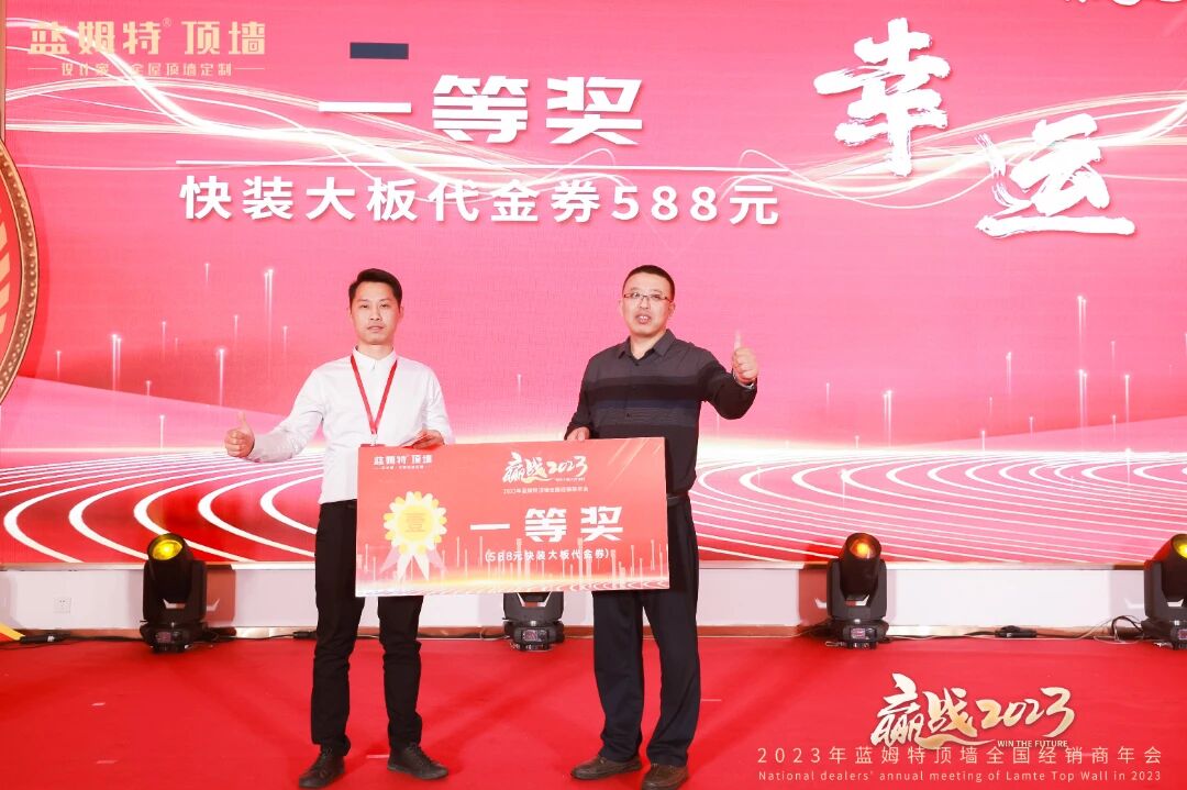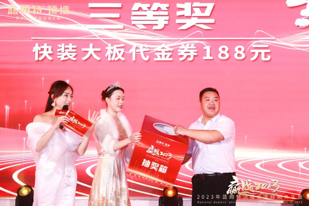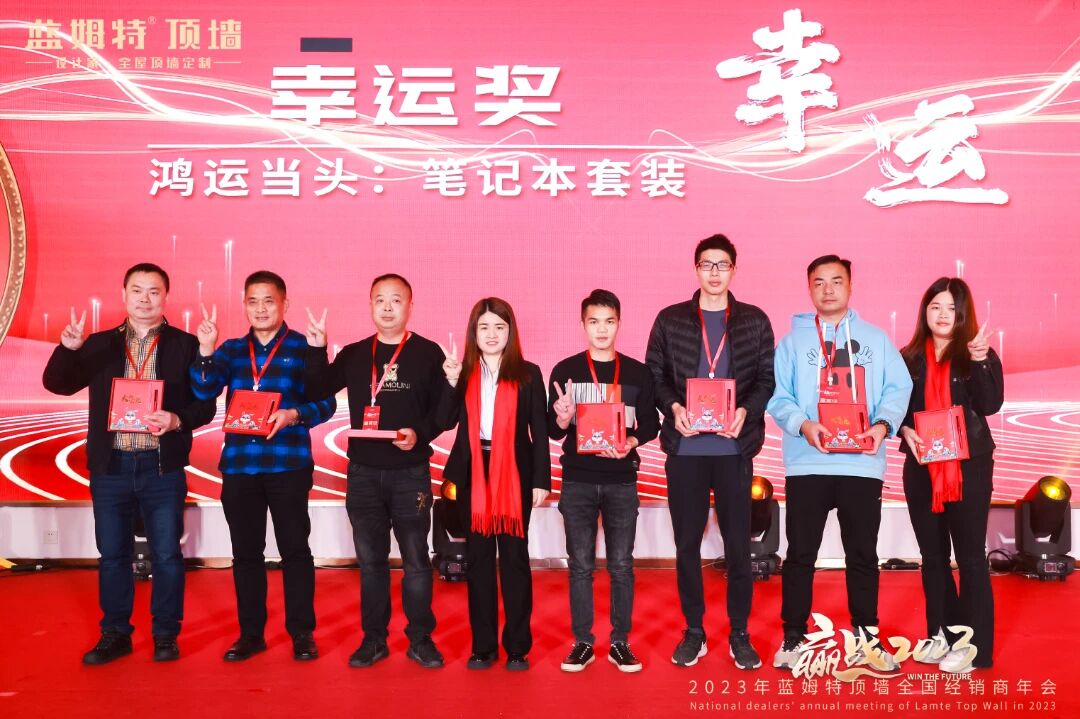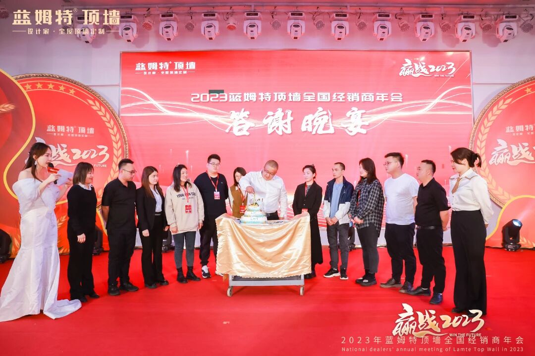现场洋溢轻松欢乐的氛围,家人们热热闹闹欢聚当下时刻。激动人心的抽奖环节及温馨满满生日宴将氛围推向更高潮。推杯换盏、觥筹交错间,家人们心与心连接更近。至此,”赢战2023“蓝姆特顶墙全国经销商年会圆满召开!