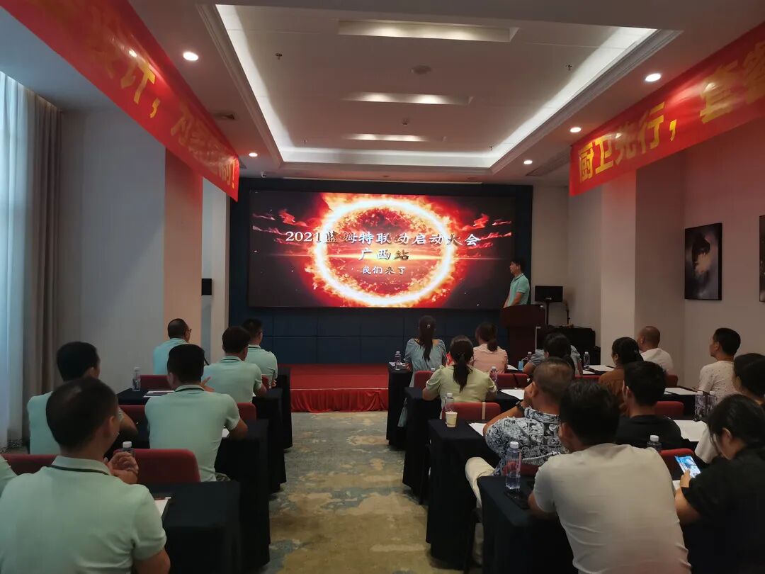 此次启动会,蓝姆特顶墙公司营销总经理刘国才、销售总监曾广祥、招商经理以及广西地区蓝姆特经销商家人们齐聚一堂。在总部精英导师的带领下,共同为蓝姆特【特给利· 年中盛典】大型促销活动蓄力备战,这意味着蓝姆特【特给利 · 年中盛典】联动的战鼓正式擂响!