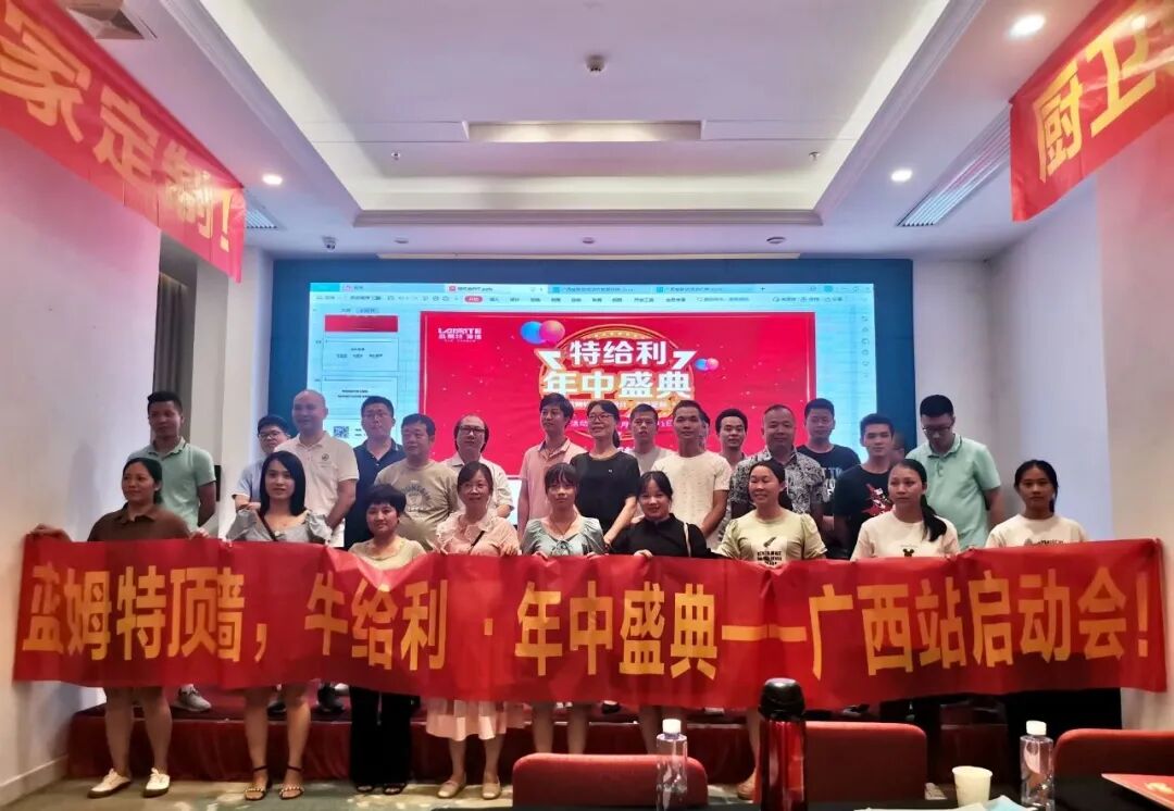 为了给年中盛典促销大战蓄势打气,做好战前动员和重点工作部署 ,7月8日蓝姆特 【特给利· 年中盛典】联动启动会在广西站顺利召开。
