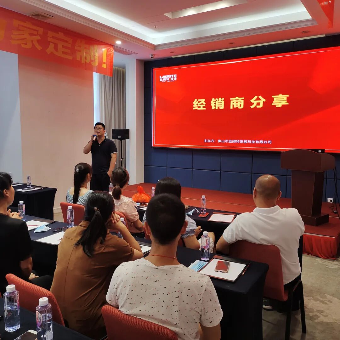 刘总阐述了蓝姆特全新的店面布局和品牌形象塑造,并鼓励在场的经销商要胆大心细,敢动敢走,紧跟市场变化趋势,营造更舒适的氛围,给消费者提供更加优质的服务体验。
