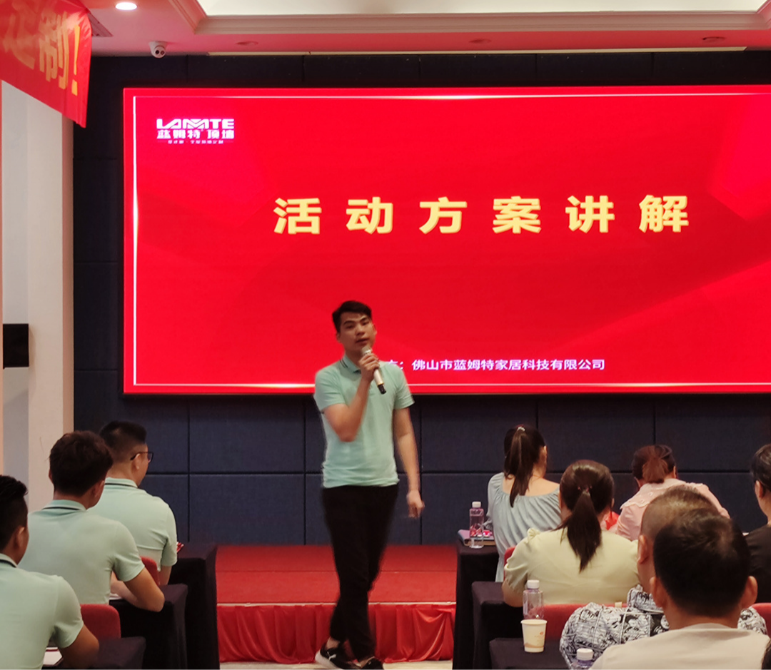 会上,蓝姆特营销总经理刘总致辞欢迎经销商伙伴们的到来,同时围绕本次活动内容,激励大家把握机遇,抓住促销节点,快速行动起来。